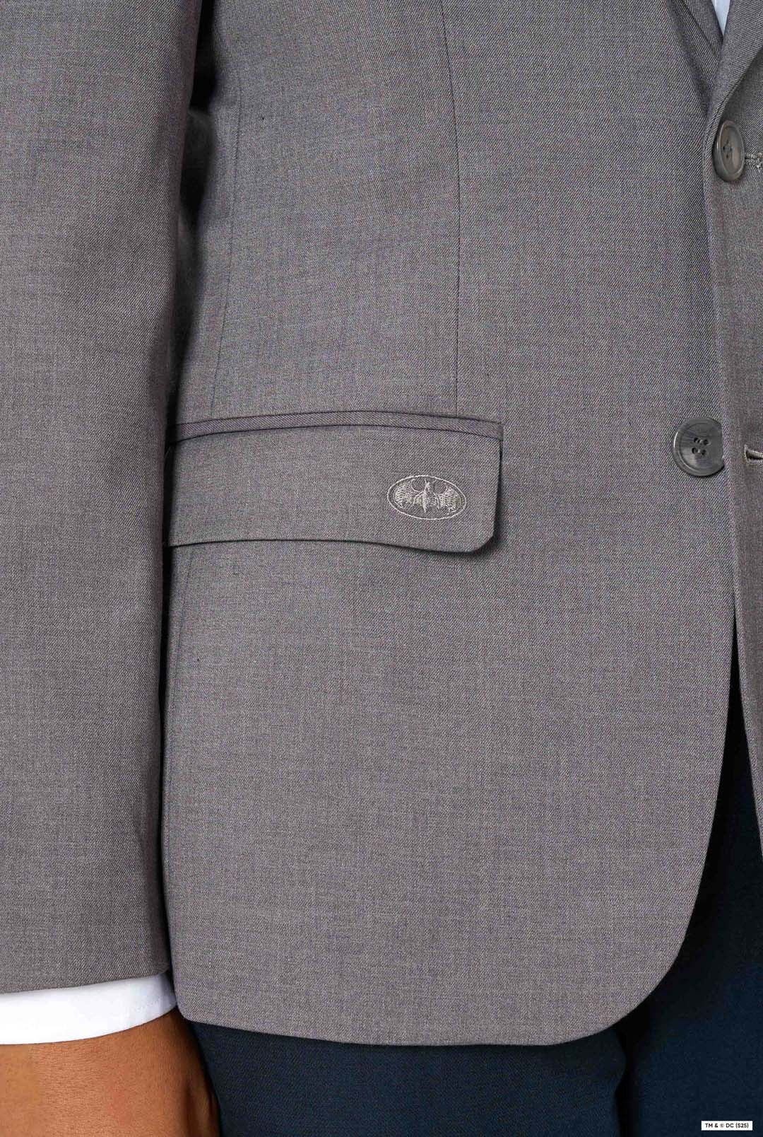 Grey and sharp on the outside, Batman hero power on the inside. This official blazer adds a subtle Gotham twist to any kid's outfit.
