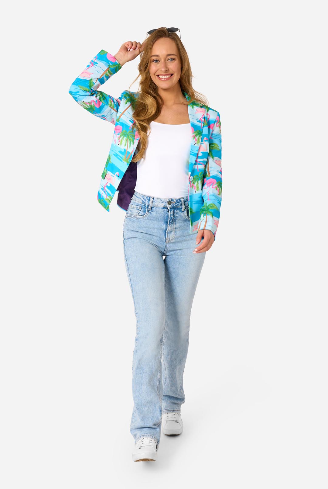 Tropical vibes incoming! The Flamingirl blazer feels like summer on your shoulders.
